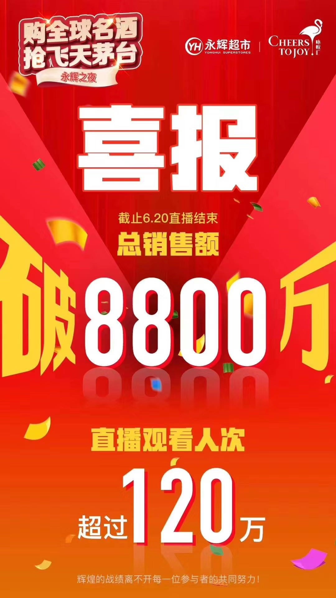 在隨之而來的618期間,永輝超市首屆全球名酒節(jié)在永輝生活A(yù)PP、小程序等線上平臺開展,6月20日晚,永輝超市CEO李國攜手茅臺北京公司董事長母小斌親臨直播間,一系列買贈(zèng)好禮、幸運(yùn)抽獎(jiǎng)、海量啤酒券大放送、葡萄酒梅酒免費(fèi)贈(zèng)等活動(dòng)令網(wǎng)友大呼過癮,3小時(shí)直播吸引超120萬網(wǎng)友在線觀看。據(jù)統(tǒng)計(jì),本次永輝超市全球名酒節(jié)期間,永輝酒類商品全渠道銷售額超8800萬元。