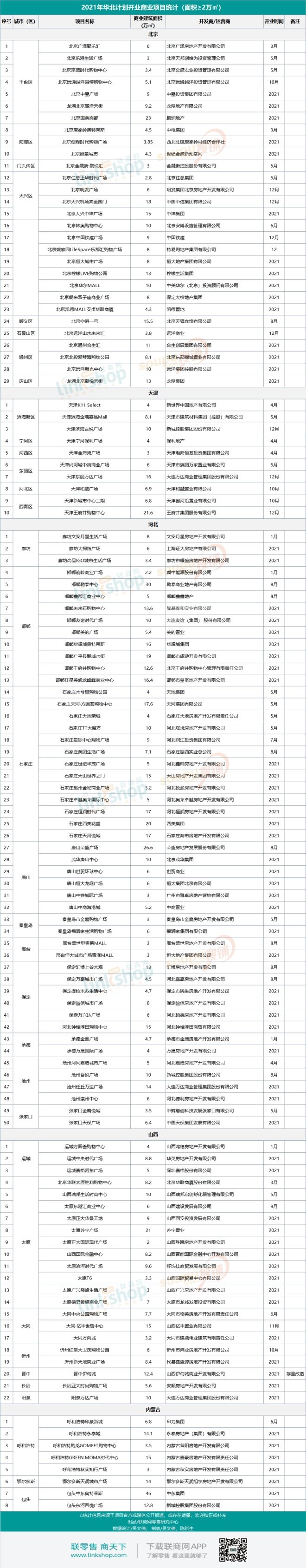 附:2021年華北地區擬開業商業項目統計表