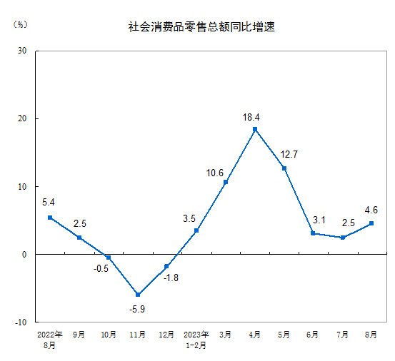 2023年8月份社會消費品零售總額增長4.6%