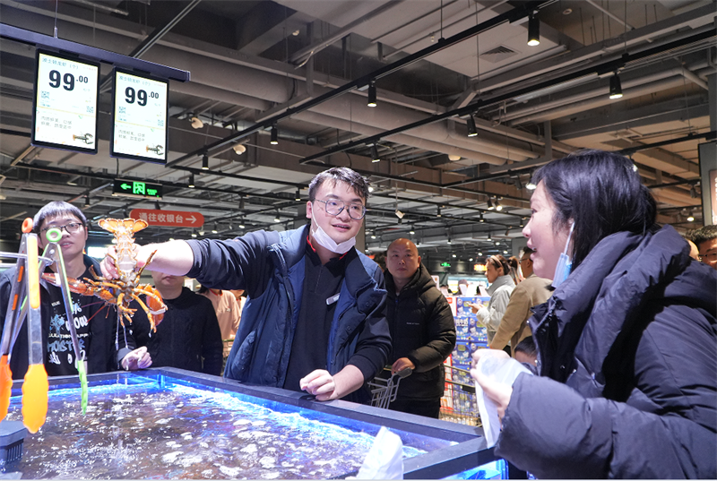 12月的杭州寒風凜冽,杭州市臨平區萬達廣場負一層的永輝超市內卻摩肩接踵,人頭攢動,無論是熱氣升騰的熟食區,香氣誘人的烘焙區,還是網羅全球爆品的食百區,都擠滿了前來選購的消費者們,山藥、雞蛋、牛肉、車厘子等“頂流”商品不等上架便被搶購一空。“和調改前相比商品的種類豐富了很多。”正在排隊挑選心儀蔬果的萬女士笑著說。此次調改中,臨平萬達店共下架了 8610 個商品,上新6851支商品,下架和上新比例分別高達 70%與 60%,調整后的商品結構達到胖東來商品結構的 80%以上,進口商品占比20%。消費者不僅能在家門口實現“海淘”自由,還能在胖東來自有品牌專區和永輝優選商品專區購買到胖東來和永輝的多款網紅單品。