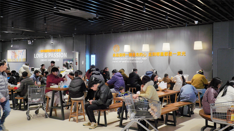 “我以前就是這家超市的常客,沒想到調改后變化這么大。現在熟食產品種類很多,不想做飯來這邊買點現成的,買完單在顧客休息區就可以用餐,方便了很多。”剛剛下班的張女士一邊挑選商品一邊說。而永輝超市新增的顧客休息區坐滿了用餐和休息的顧客,休息區里洗手池、濕紙巾、直飲水、一次性水杯、血壓計、身高體重測量儀等便民設施一應俱全,除了用餐的顧客,也有不少顧客在休息區量身高體重、測血壓。